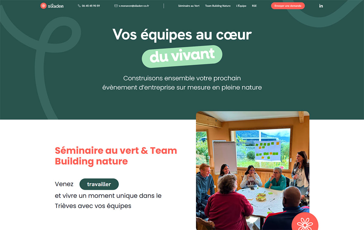Pour cela, il a entrepris une évolution importante de son site siladen-co.fr, en remaniant la page d’accueil, les pages Séminaires et Team Building, et en ajoutant des articles du type blog.